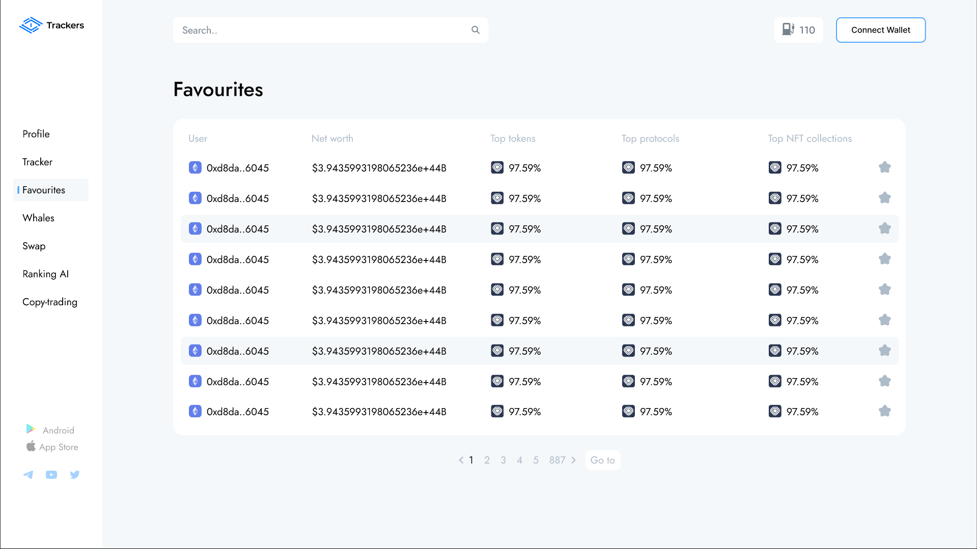 Imagine how convenient it is to save certain wallets and periodically rely on their transactions and analyze them. We've implemented it! Now you can open a list of whales, view their profile in the tracker, add them to your favorites and keep coming back to keep track of changes. It's very convenient and there's no risk of losing an interesting wallet!